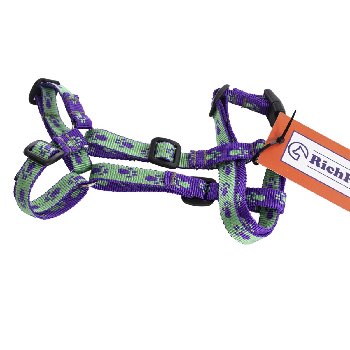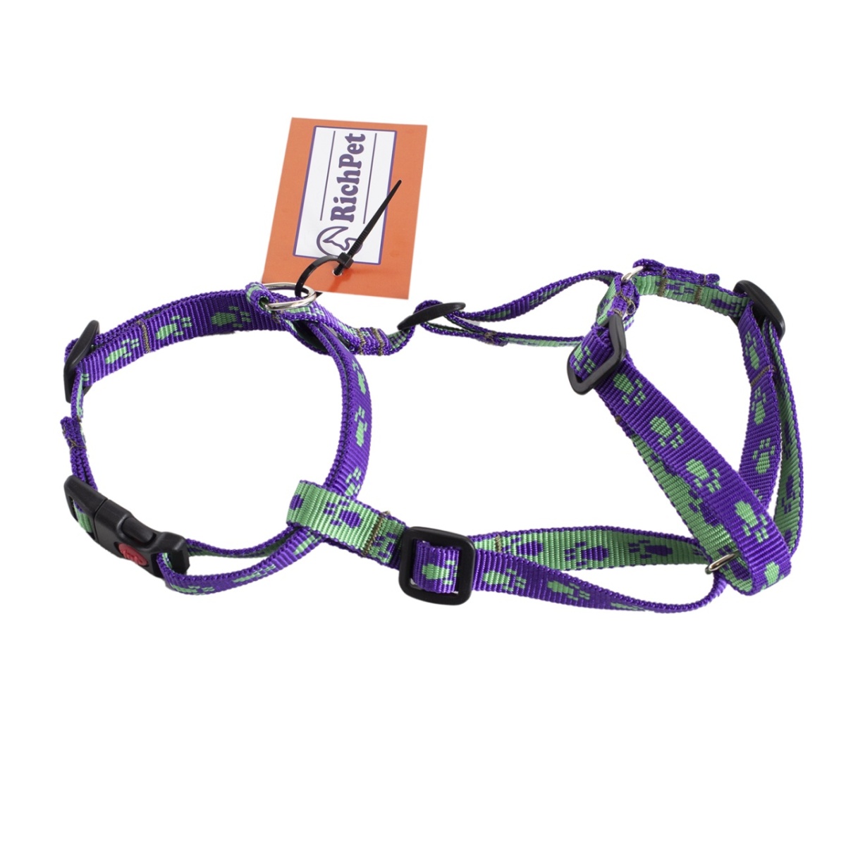 Шлейка для собак RichPet Лапки 15мм. Выполнена из нейлона со светоотражающей стропой. Шлейка регулируемая, легко снимается и одевается на собаку, оснащена пластиковой фурнитурой. Материал: нейлоновая стропа 15мм. Обхват шеи 27-42см, обхват груди 30-47 Материал: нейлоновая стропа 15 мм