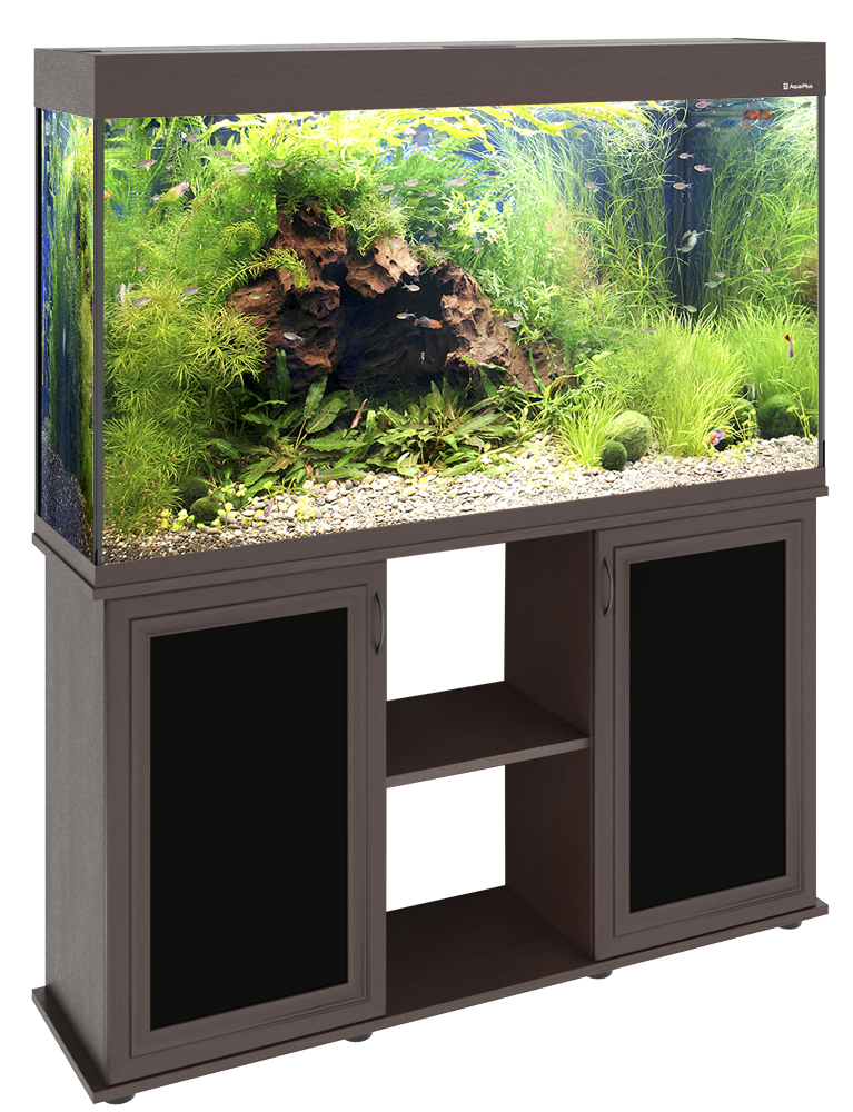 Аквариум AquaPlus LUX П288 венге (121х41х66 см) стекло 10 мм, прямоугольный, 254 л., с лампами Т8 2х38 Вт, аквар. коврик