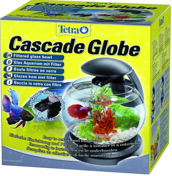 Аквариум Cascade Globe 6,8L представляет собой круглую стеклянную ёмкость со встроенной светодиодной подсветкой и внутренним каскадным фильтром.