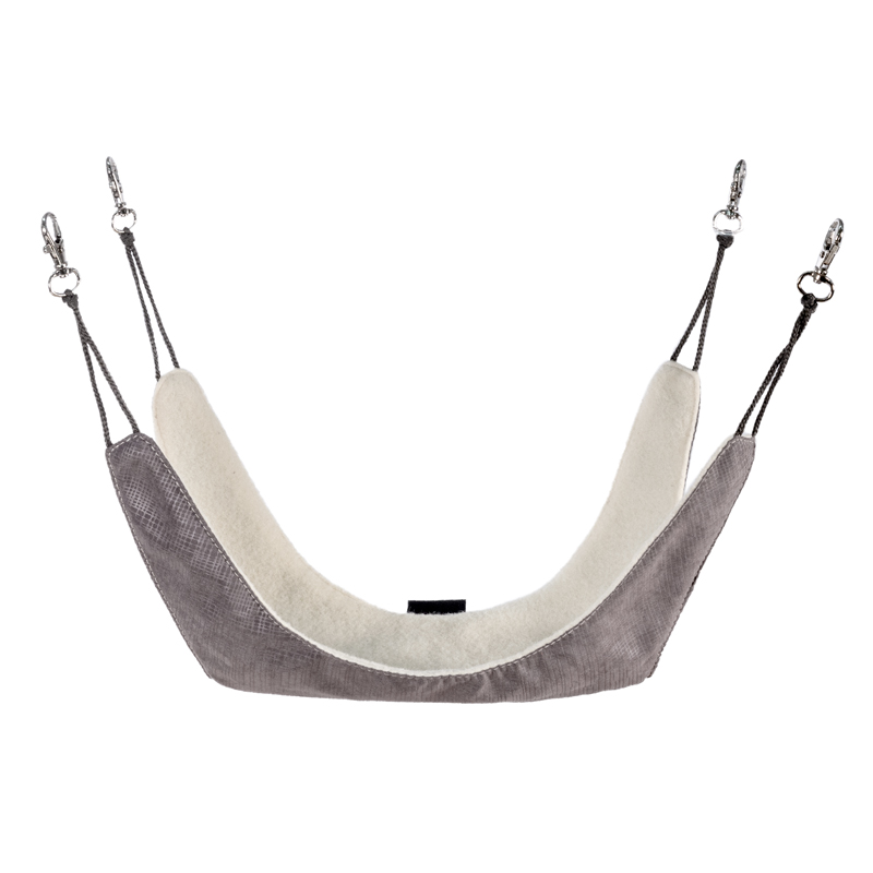 Этот мягкий и уютный подвесной гамак оборудован четырьмя прочными карабинами, при помощи которых его можно зафиксировать в любом положении внутри клетки. Благодаря функциональному и практичному велюру изделие прослужит максимально долго и не потускнеет даже после многократной стирки. Отделка гамака мягким флисом обеспечит питомцу уютный отдых, а оригинальная расцветка сделает его украшением любой клетки. Размеры: 380*320 мм.