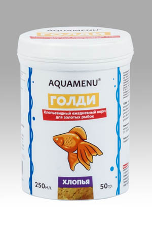 "Голди" - хлопьевидный ежедневный корм для всех разновидностей золотых рыбок в аквариумах, бассейнах и прудах. Рецепт корма составлен с учетом специфических потребностей золотых рыбок для обеспечения правильного обмена веществ и улучшения их окраски.