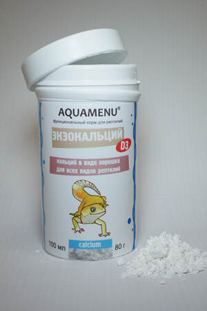 "Экзокальций" -функциональный корм для всех видов рептилий в виде порошка. Способствует развитию костей и помогает избежать симптомов недоедания. Особенно нуждаются в нем черепахи, для которых кальций является самым важным элементом для полноценного построения панциря и нормальной жизнедеятельности. Недостаток кальция вызывает снижение естественного иммунитета рептилий, что приводит к повышенному риску возникновения заболеваний, вызывает отставание и задержку в росте, нарушение обмена веществ, неправильное формирование костей скелета. Мелкий, отлично прилипает к насекомым и растительному корму.
