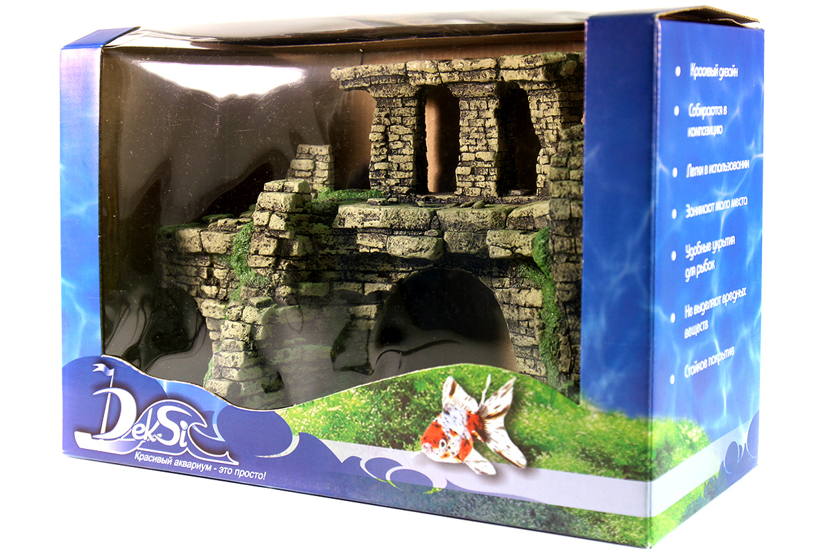 Декорации для аквариума «Декси» КРЕПОСТИ рекомендованы для оформления аквариума в художественном стиле с темой «Затонувшие цивилизации». Особенно часто используются в аквариумах для детей, создавая атмосферу подводной сказки. Аквариумные декорации «Декси» долговечны, прочны, не изменяют параметры воды ,т.е. абсолютно безвредны для аквариумных рыбок, их удобно доставать из аквариума и легко мыть. Используя несколько гротов для аквариума «Декси» КРЕПОСТИ различных размеровв дополнении с односторонними декоративными элементами «Декси» КРЕПОСТИ, можно создать в аквариуме древние затонувшие руины. Все декорации "Декси" упакованы в красочную упаковку,, которая предотвращает изделие от поломок. Размеры: 33х22х14 см