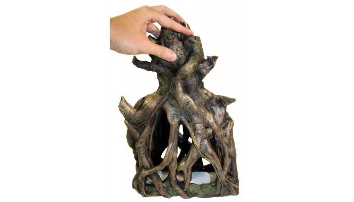 Аквариумная декорация прекрасно подойдёт для оформления аквариума в натуралистичном стиле. В отличии от природных коряг, искуственные коряги не требуют никакой подготовительной обработки перед помещением в аквариум. Серия объемных декораций «Коряги» состоит из коряг семи разных размеров, что позволяет сделать отличную композицию в аквариуме. Дополняют серию односторонние декоративные элементы, а также маскирующие элементы, что существенно расширяет композиционные возможности при оформлении аквариума. С аквариумными корягами при оформлении аквариума в натуралистичном стиле отлично сочетаются камни. Долговечны, высокопрочны, не изменяют характеристики воды, совершенно безвредны для аквариумных рыбок. Декорации удобно доставать из аквариума и легко мыть. Размеры: 27х17х40 см