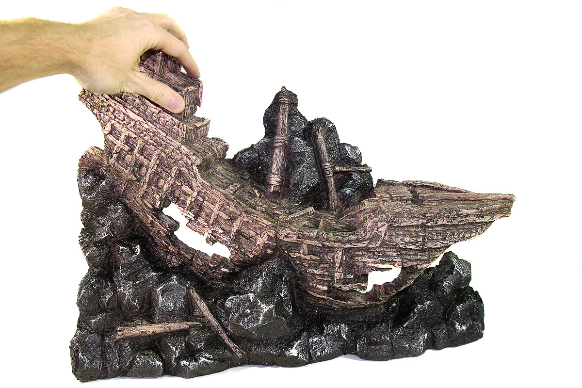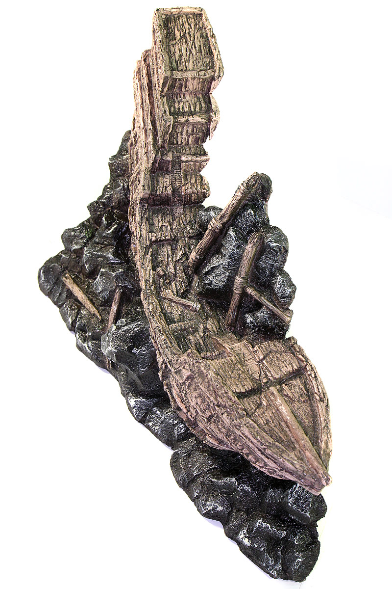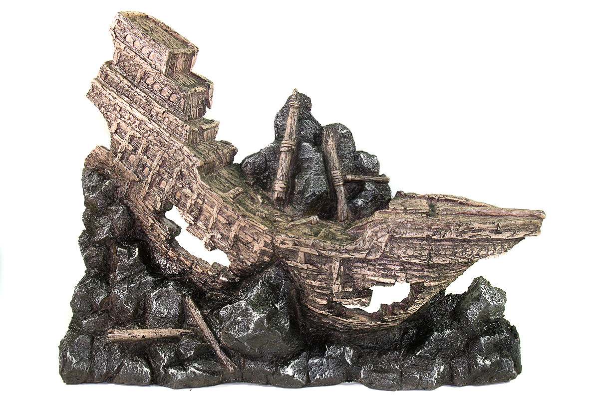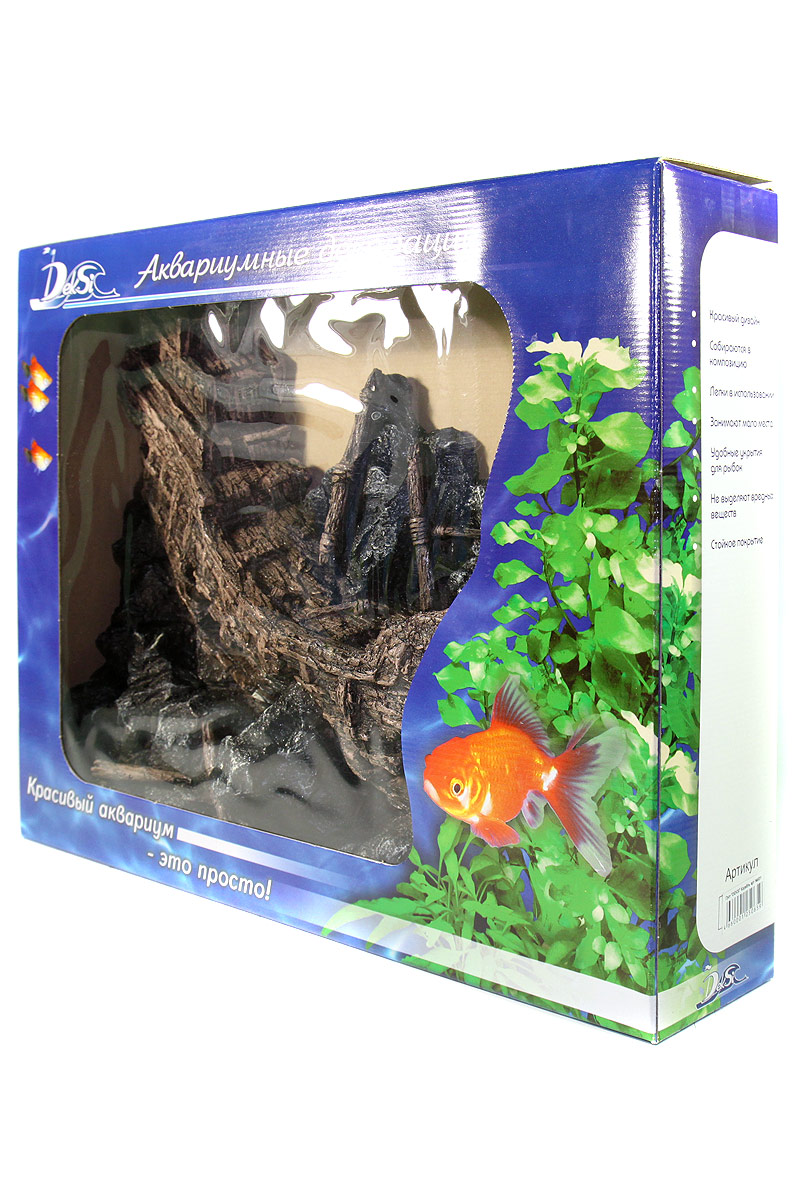Аквариумные декорации «Декси» КОРАБЛИ рекомендованы для оформления аквариума в художественном стиле с темой «Затонувший корабль». Внутри аквариумных гротов КОРАБЛИ аквариумные рыбки найдут себе укрытие, и даже небольшие обитатели аквариума выглядывая из отверстий грота, будут казаться огромными подводными чудовищами, поселившимися в останках кораблекрушения. Односторонние декоративные элементы "Декси" устанавливаются к задней стенке аквариума. В сочетании с наружным плёночным фоном, а так же с дополнительным оформлением на переднем плане аквариумные декорации "Декси" создают многоступенчатую панораму - картину подводного мира Декорации для аквариума «Декси» долговечны, прочны, не изменяют параметры воды ,т.е. абсолютно безвредны для аквариумных рыбок, их удобно доставать из аквариума и легко мыть. Имитировать скалы, среди которых затонул древний корабль можно с помощью аквариумных гротов «Декси» КАМНИ. Размеры: 50х10х40 см