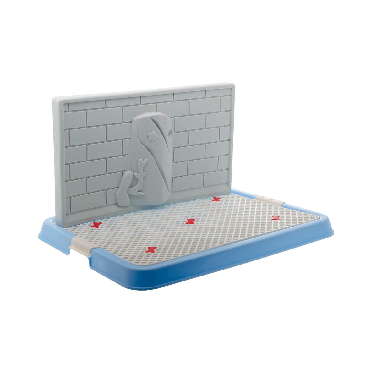 Туалет со стенкой вы сможете поставить в любое место, не беспокоясь за гигиену стен в вашей квартире. Рельефная стенка (высотой 25 см) с рисунком впишется в любой интерьер. Пелёнка помещается под рамку, удерживаемую боковыми фиксаторами. Прочная решётка защитит пелёнку от воздействия когтей и зубов. Прорезиненные ножки защитят ваш пол от царапин и предотвратят скольжение.