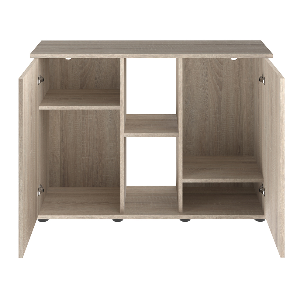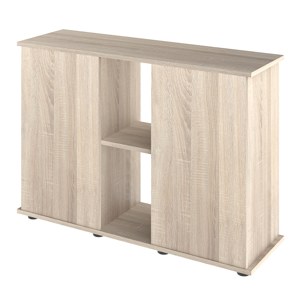 Подставка с габаритными размерами (Д*Ш*В):101x41x72 см предназначена для аквариума.Дверцы оснащены механизмом «Push to open», который обеспечивает открытие и закрытие одним нажатием. Подставка изготовлена из ДСП и не рассчитана на длительное воздействие влаги. Использование эксцентриковых стяжек обеспечивает отсутствие внешних отверстий. Подставка регулируется по уровню с помощью регулируемых опор. Между аквариумом и подставкой необходимо использовать прокладку из изолона. К каждой подставке прилагается простая и наглядная инструкция по сборке.